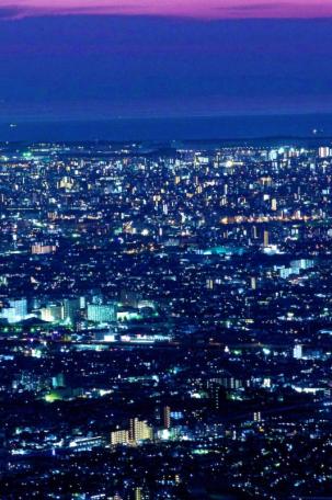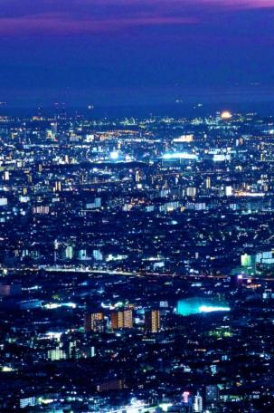 生駒山の山頂付近に位置し、大阪平野を一望。