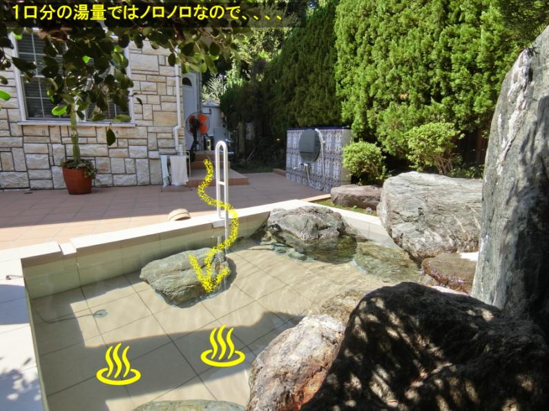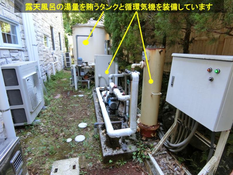 <温泉とタンク> 普通の別荘1軒分の契約ですと、大きな露天風呂を一杯に満たすには半日くらいかかってしまいます。