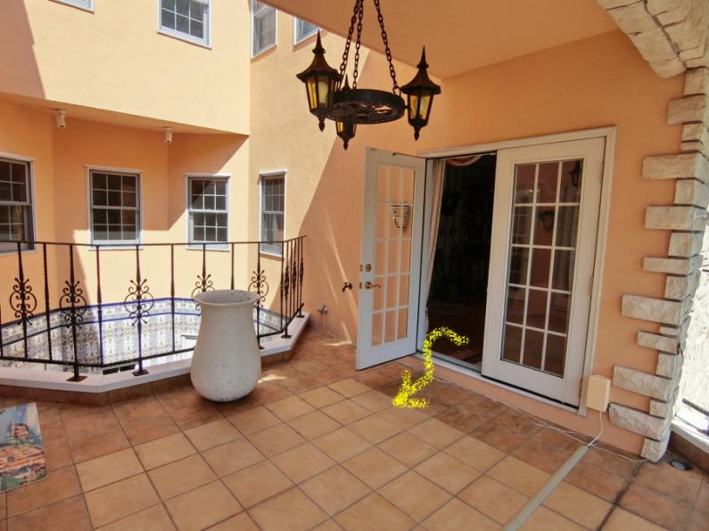 <スペイン風ですが、、、> 屋内に中庭(パティオ)を有したスペイン風建築です。