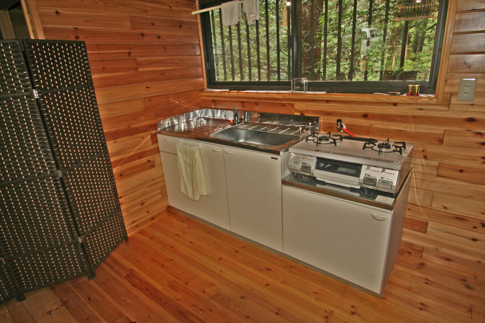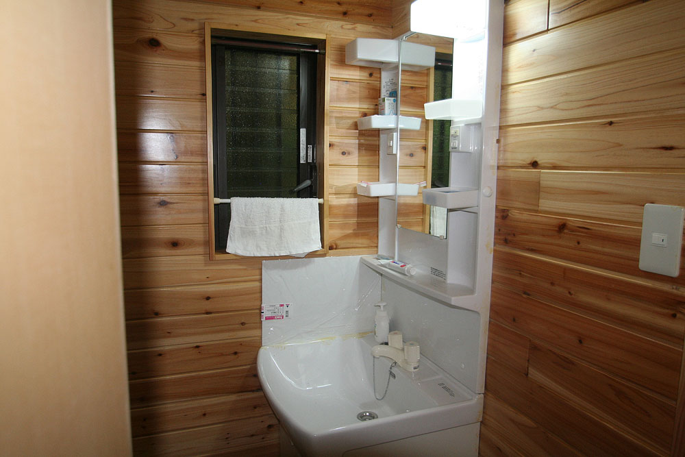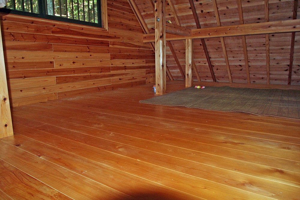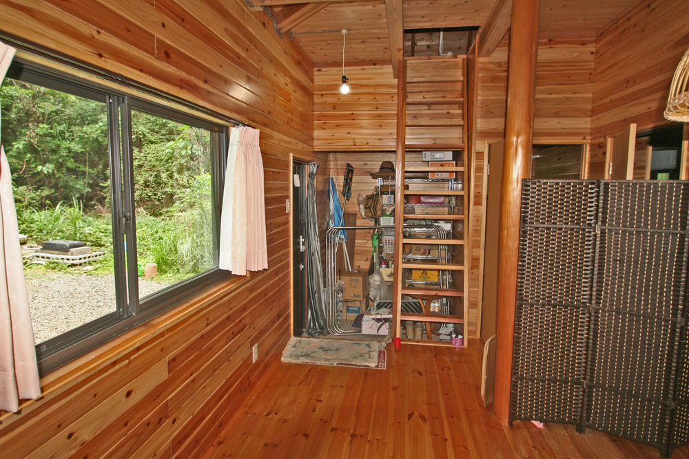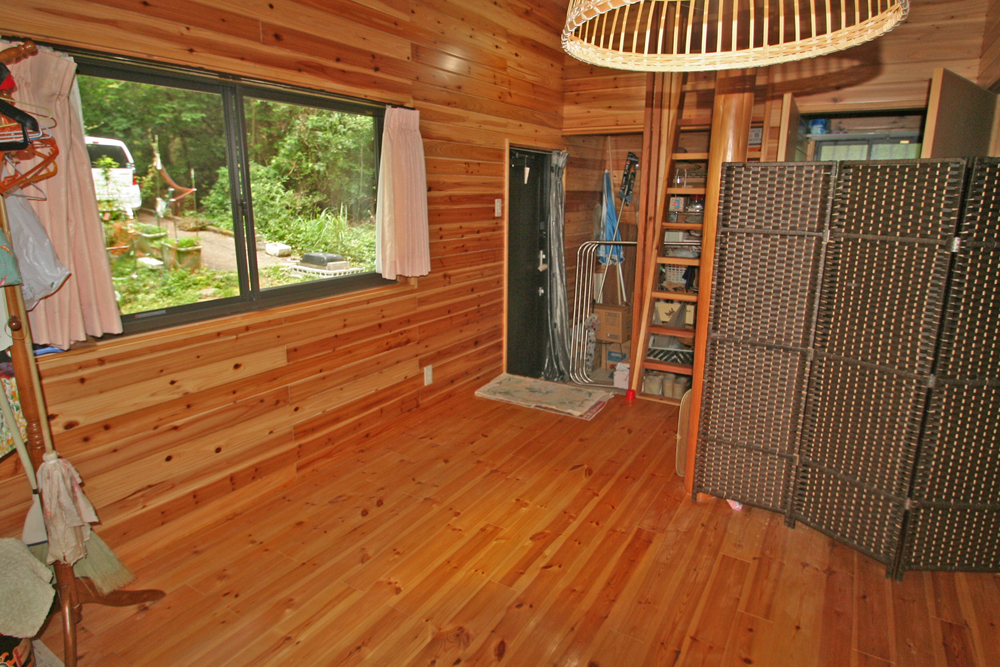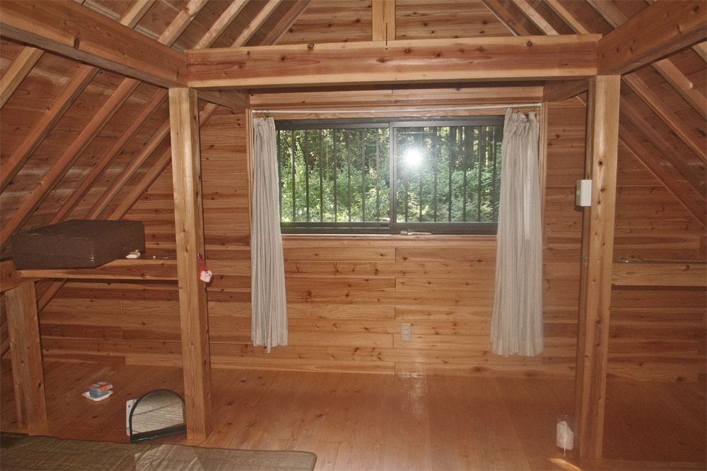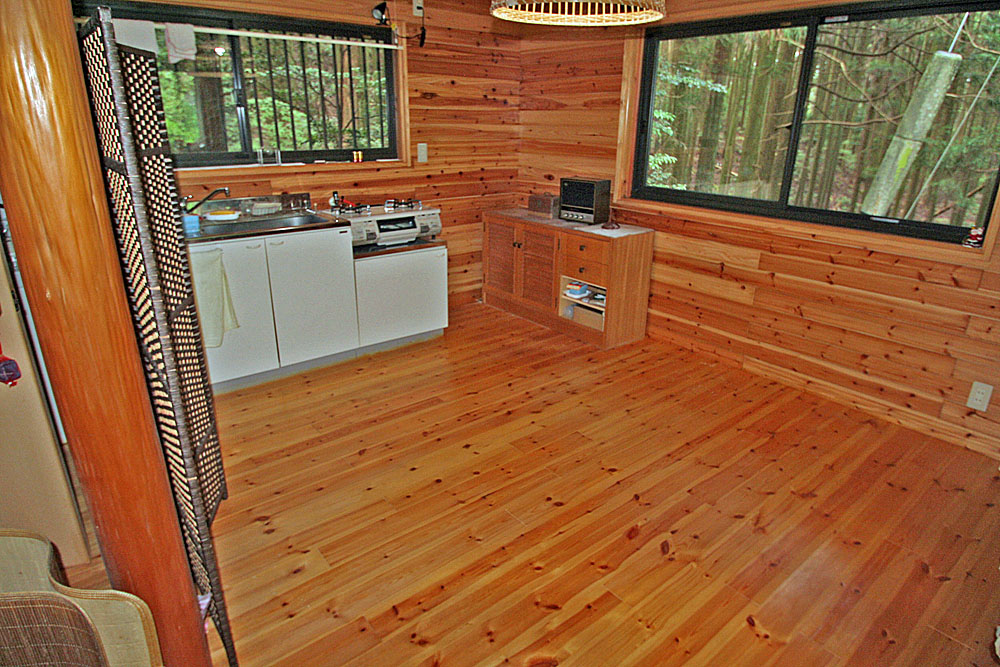生石高原の別荘地床、壁、天井にふんだんに無垢材を使用