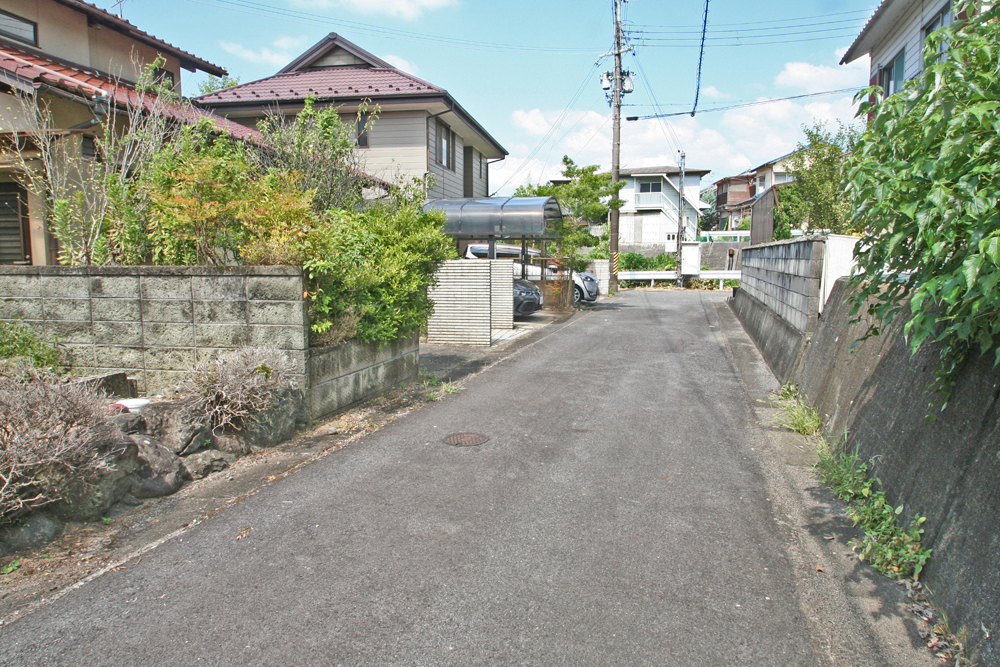 国道24号線まで車で5分、道沿いにはコンビニ、スーパー、食べ物屋が軒を連ねています。