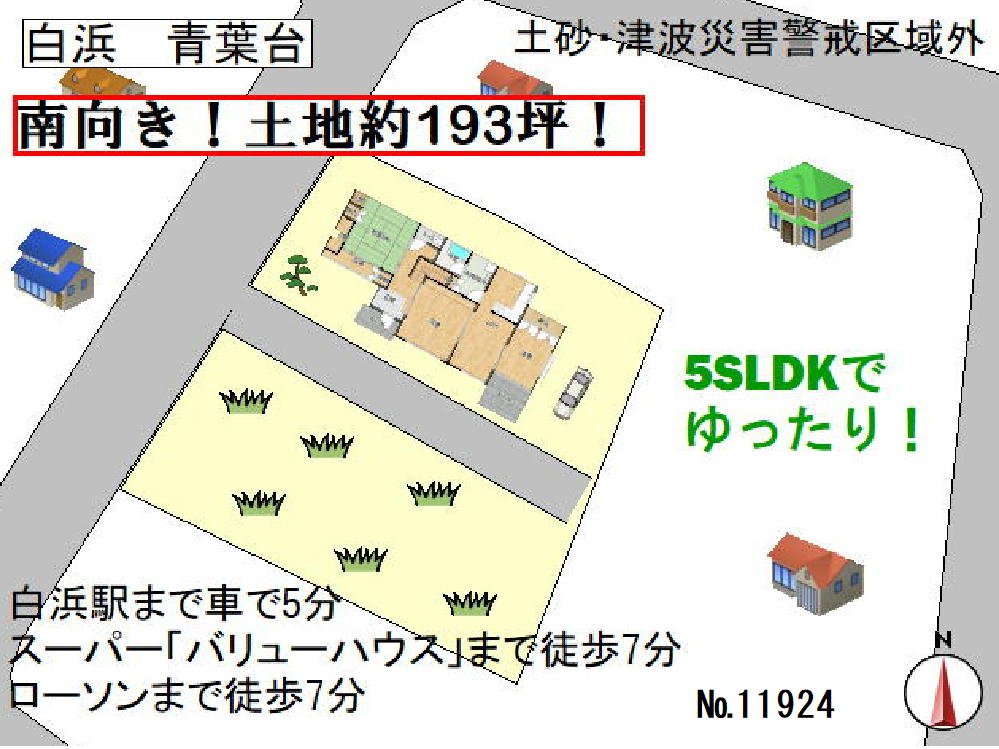 紀伊富田駅まで車で5分白浜駅まで車で5分、スーパー「バリューハウス」まで徒歩7分、ローソンまで徒歩7分。
