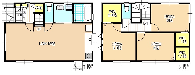 - 18帖のLDK!2階は各部屋にウォークインクローゼット付き!