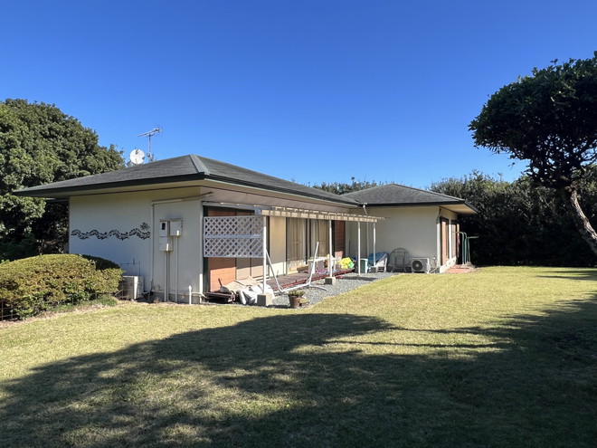 浜島町、旭ヶ丘別荘地内の戸建てです。芝生の庭が広がる日当たりの良い立地です。付近にはレジャー施設、ゴルフ場があります。