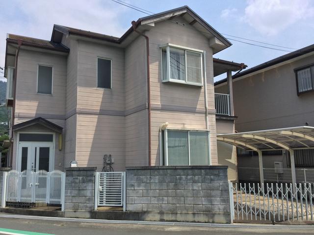 ・落ち着いた薄ピンク色の外壁に白い建具や門扉が映えて優しい印象のお家です。