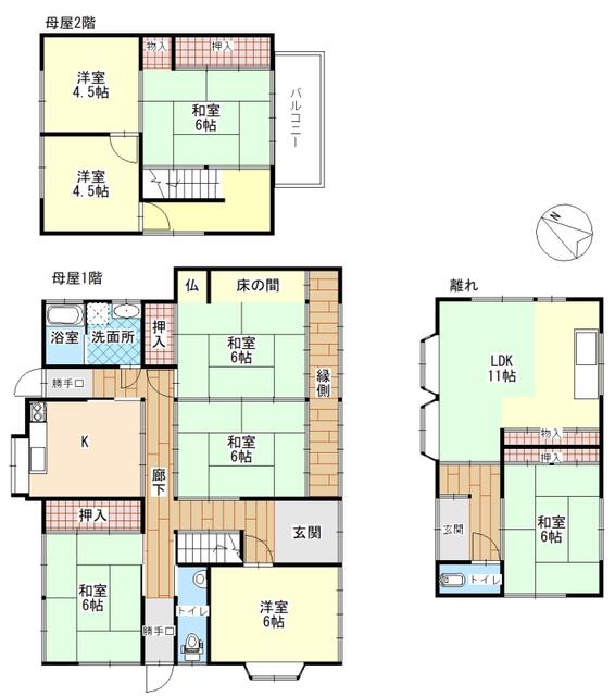 部屋数も多く、離れもあるので2世帯生活も可能。