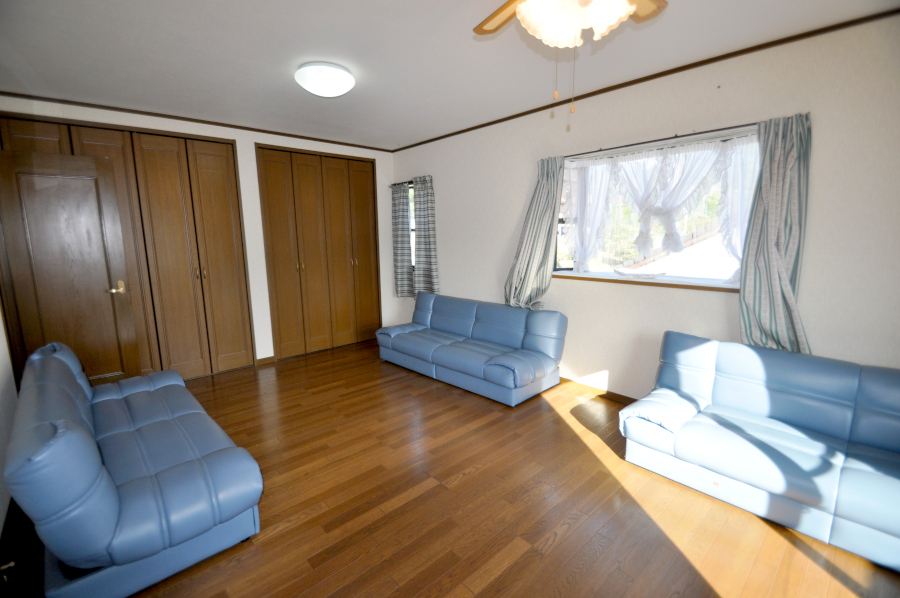 2階の洋室12畳には、壁一面に収納スペースがあるので、お部屋を広く使うことができて便利です。