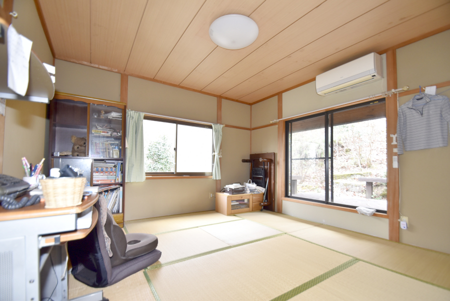 お部屋数にゆとりがあるので定住利用にもおすすめです(^^)/玄関を出て敷地をさらに上にのぼると和室とつながるウッドデッキがございます。