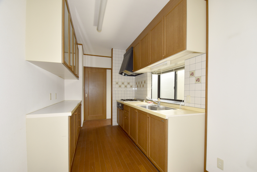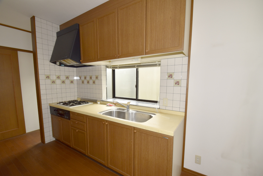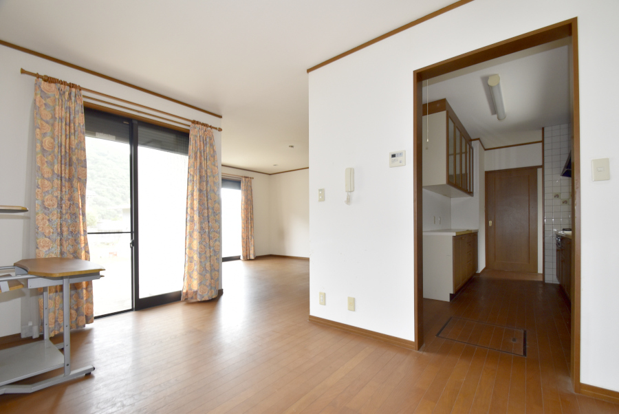 リビングとダイニングはつながっていますが、パーティションや家具などを置くことで空間を分けることもできますよ☆キッチンは、匂いや音が広がりにくいクローズドキッチンです◎キッチンから勝手口、洗面脱衣室、浴室は一直線に並んでいて家事動線が良好な間取りです。