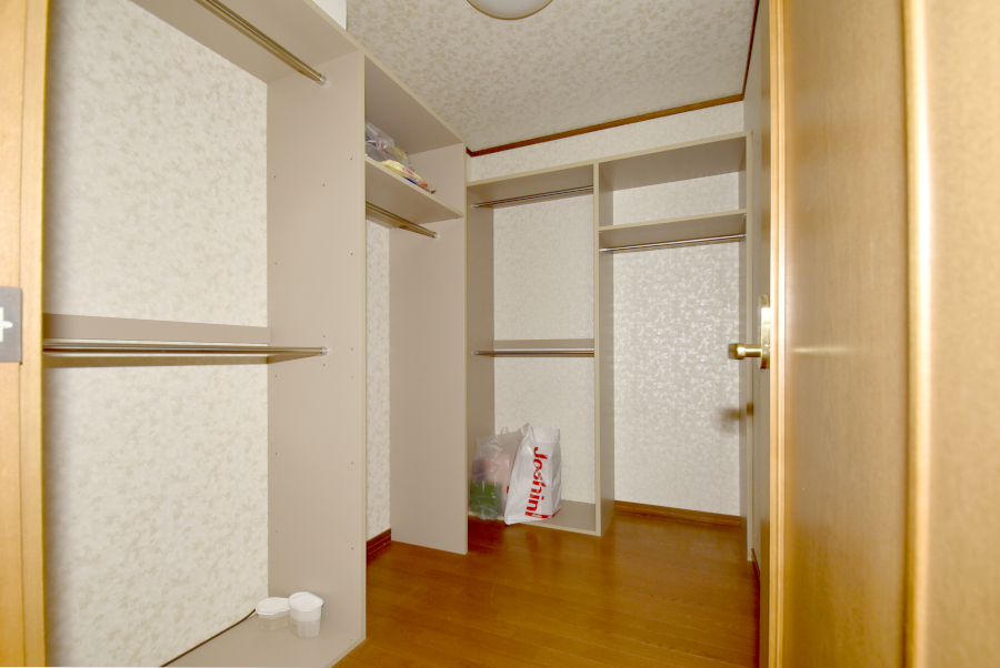 13畳は一番大きなお部屋で主寝室にぴったりです☆3畳のウォークインクローゼットもあり、衣服をすっきりと収納できますよ◎また、廊下には家族共有で使える可動棚も備わっています!