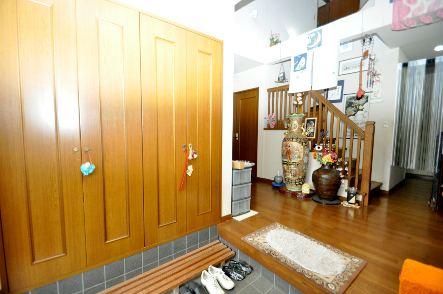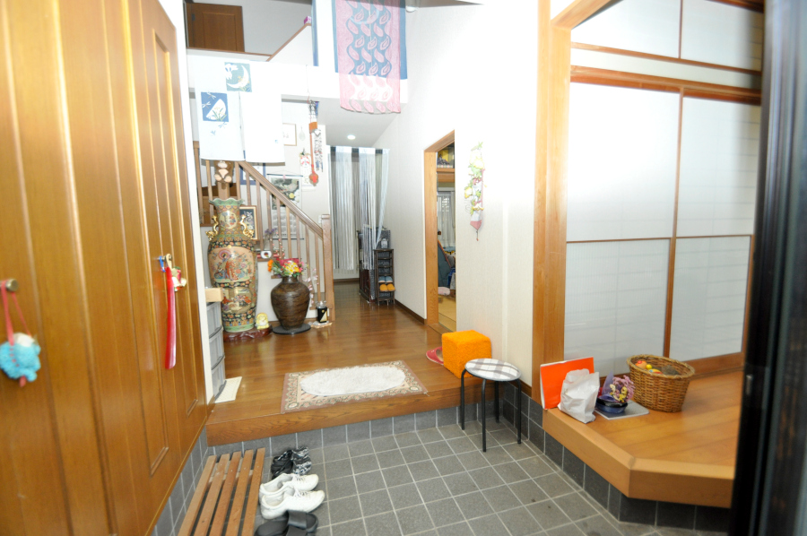 耐震性・耐久性に優れ、地震に強く、長く安心してお住まいできるお家です☆オーナー様が丁寧にお使いなので、補修の必要もなくお住まい頂けますよ♪玄関を入ると吹抜で明るく開放感のある空間になっています。