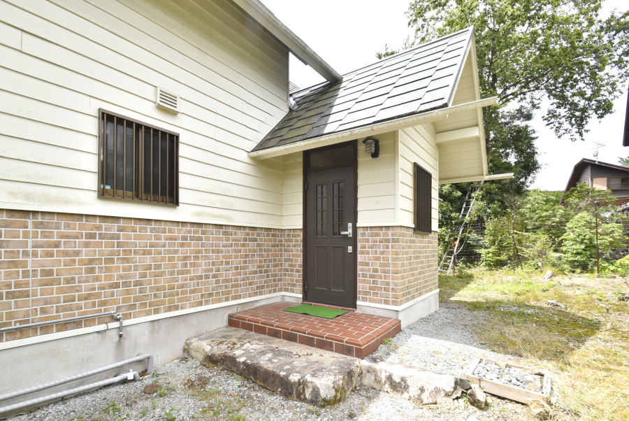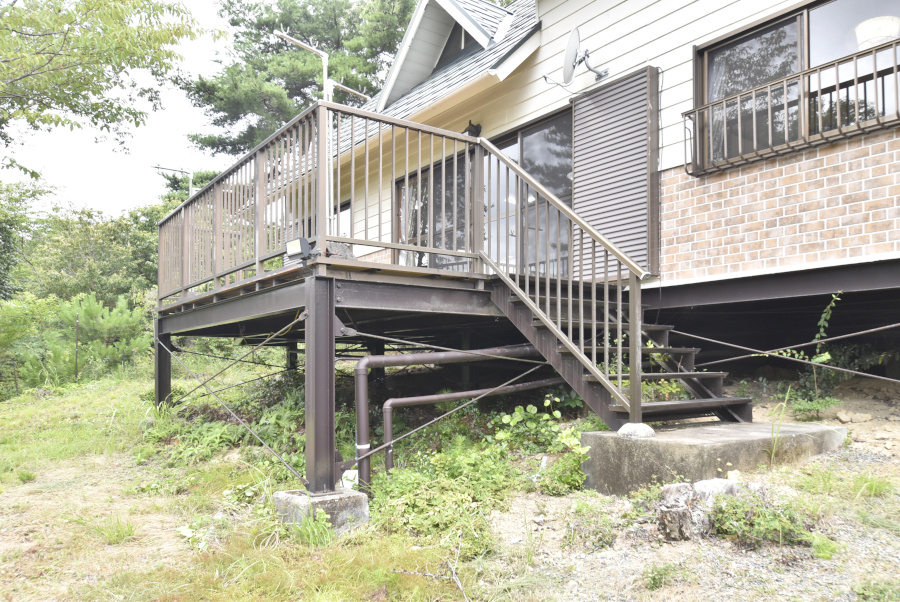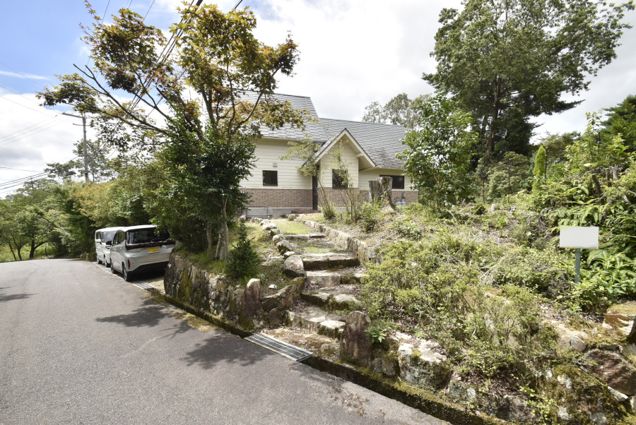 また、山の中の別荘地ですので傾斜地が多い中、当物件はゆるやかな傾斜地+平坦地の、アップダウンが少なく使いやすい敷地です♪建物は昭和57年築の木造スレート葺2階建。