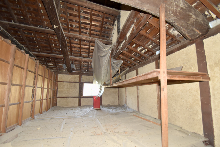 倉庫の南側にあるスペースは、整地すれば家庭菜園として活用可能です◎敷地内には井戸もありますので、菜園や庭の水やりに便利ですよ♪母屋の台所と納戸は、現状雨漏り箇所があり修繕が必要です。