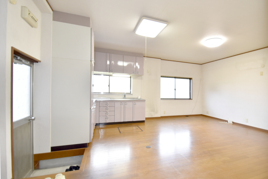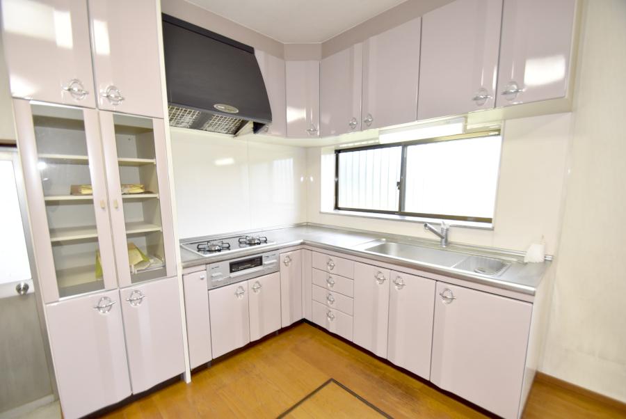 キッチンはL字型で作業効率のよい造りです♪納屋の板間はLDKからつながっています。